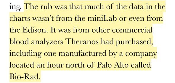 Из 192 обещанных тестов, система тестирования крови Edison, их основной и единственный продукт, делала еле-еле около двадцати. Результаты по остальным в компании получали либо от «устаревших и сложных» систем конкурентов, либо из сторонних лабораторий.