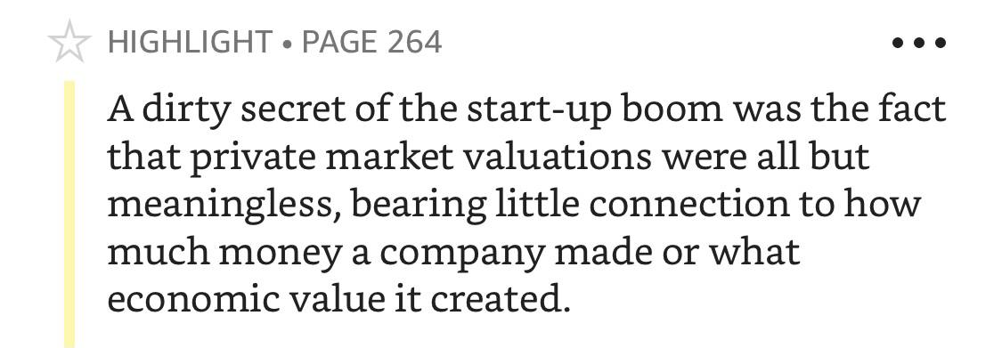 Это ещё одна история про дисфункциональную организацию, но тут и близко нет масштабов криминального мрака Deutsche Bank. И, конечно же, это история про эпоху безосновательно раздутых оценок, но тут и близко нет психопатского безумия Theranos. Так что вместо книжки можно обратить внимание на что-то из этого: