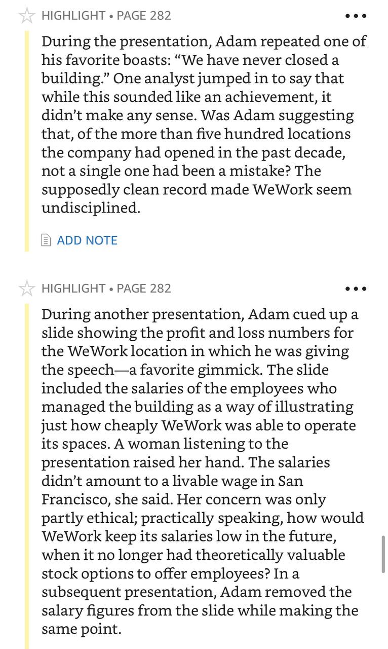 Читать есть смысл только если очень любопытно конкретно про WeWork, или если очень заходит жанр. Есть куча других способов ознакомиться с историей за меньшее время, они будут в конце поста. Но зато в книжке есть отличные анекдоты про вечеринки с водкой и грибами и разнообразный корпоративный мотивационный цирк.