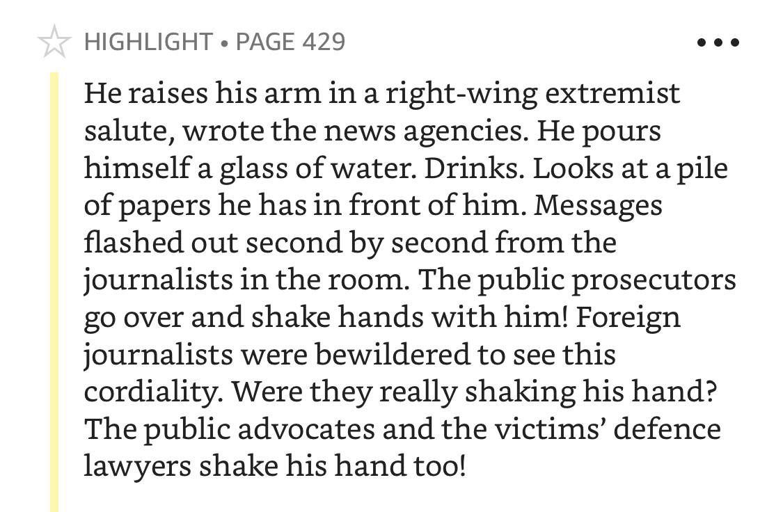 Забегая вперёд: кажется, с внутренней логикой приговора и реакций на него я не ошибся. Вижу это в цитате тогдашнего премьер-министра Норвегии, приведённой выше. И в тексте книги.