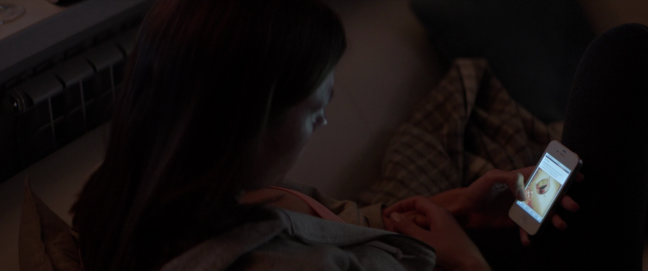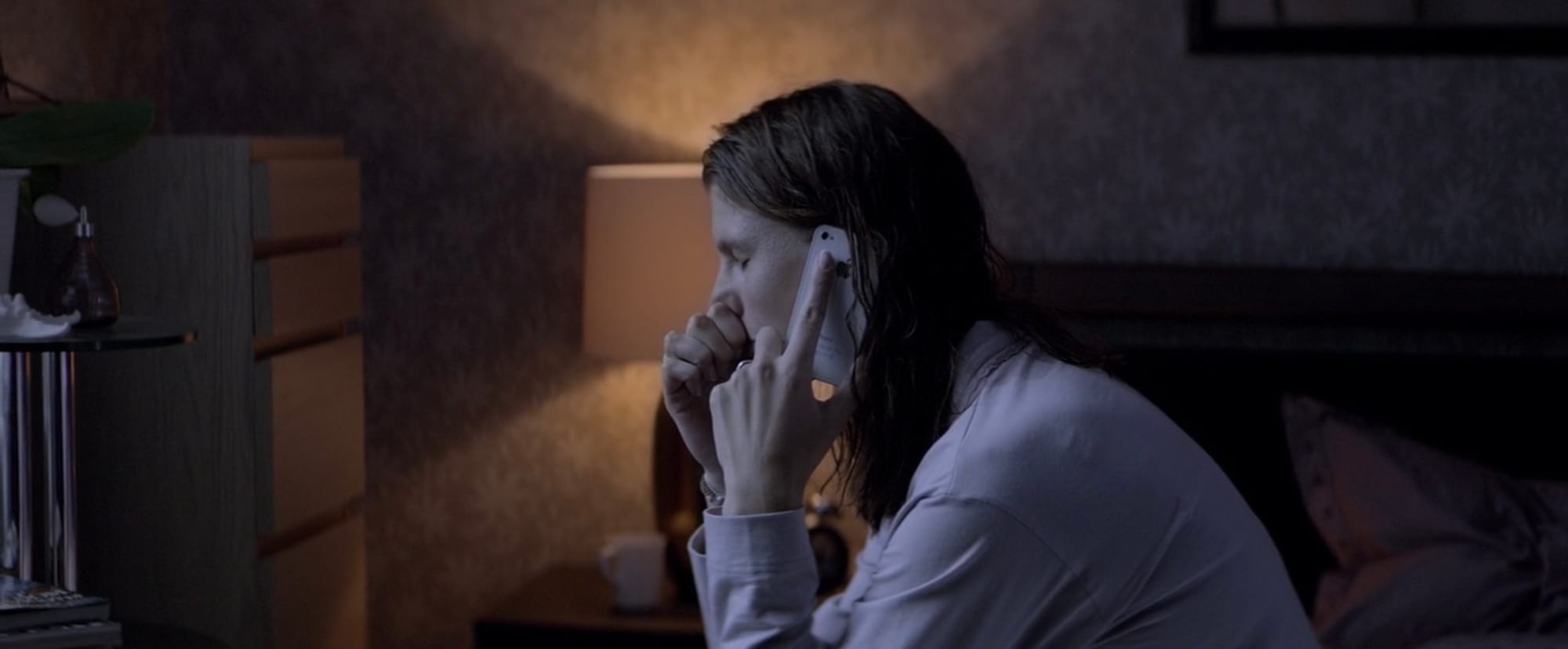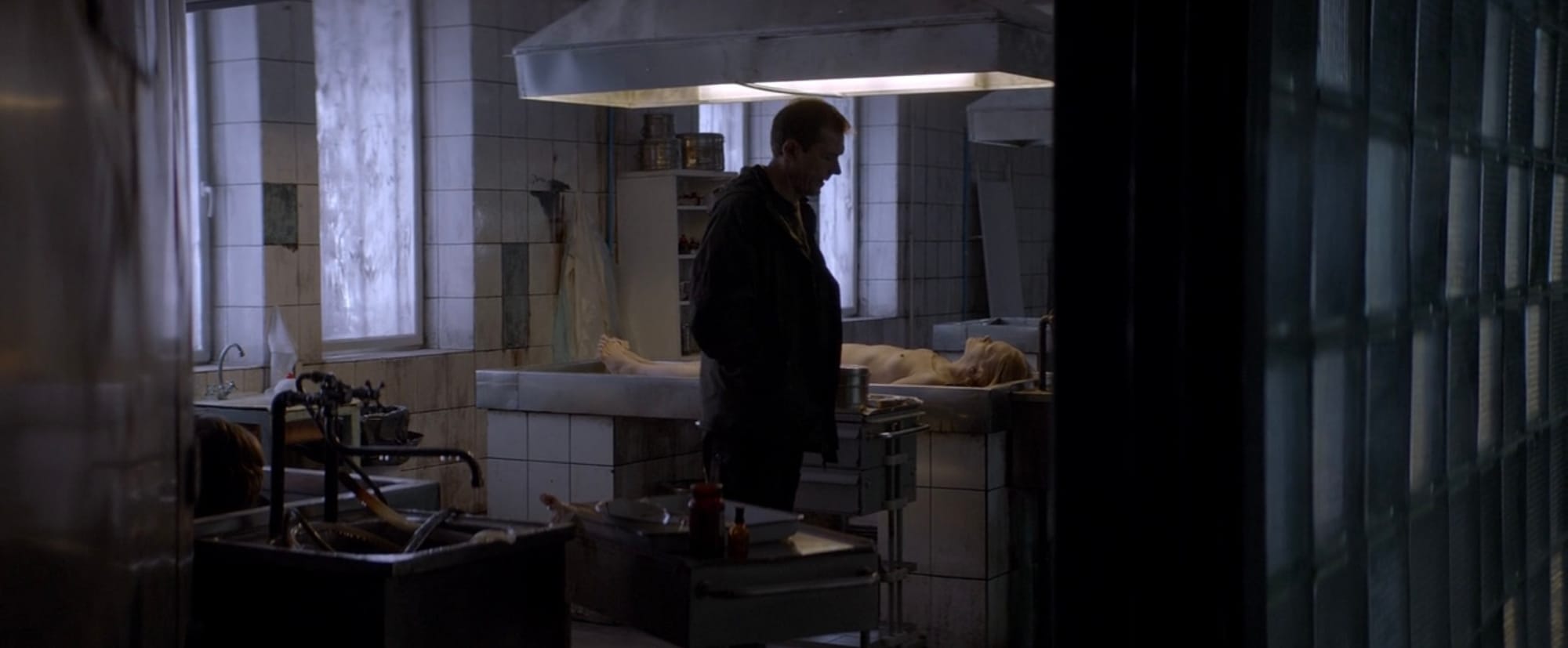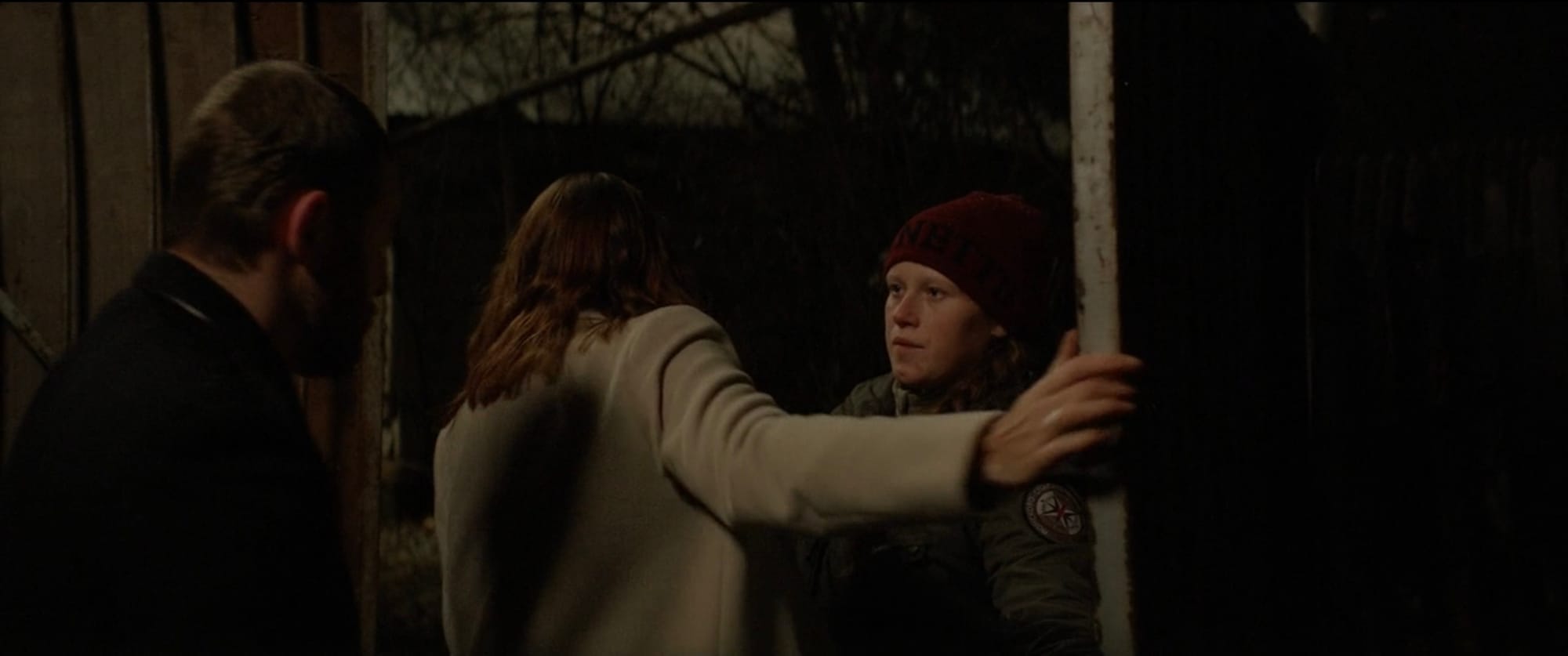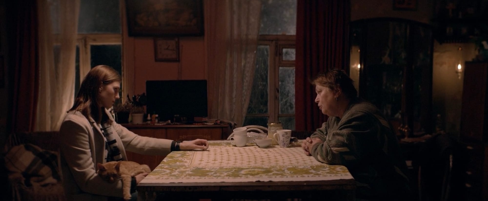 Здесь самое время натянуть вторую сову на глобус. Свет в кадре как правило подсвечивает (бадум-тс) динамику отношений в сцене. Ну то есть понятно, что это и так по умолчанию происходит в каждом кадре каждого более менее нормально снятого фильма. Но в Нелюбви есть более конкретные правила. Лучше всего их видно на примере «счастливой пары» главных героев и конкретно матери Алёши. Звягинцев, кажется, подарил ей чуть больше способности чувствовать хоть какие-то чувства, поэтому сцены с ней выглядят вот так.