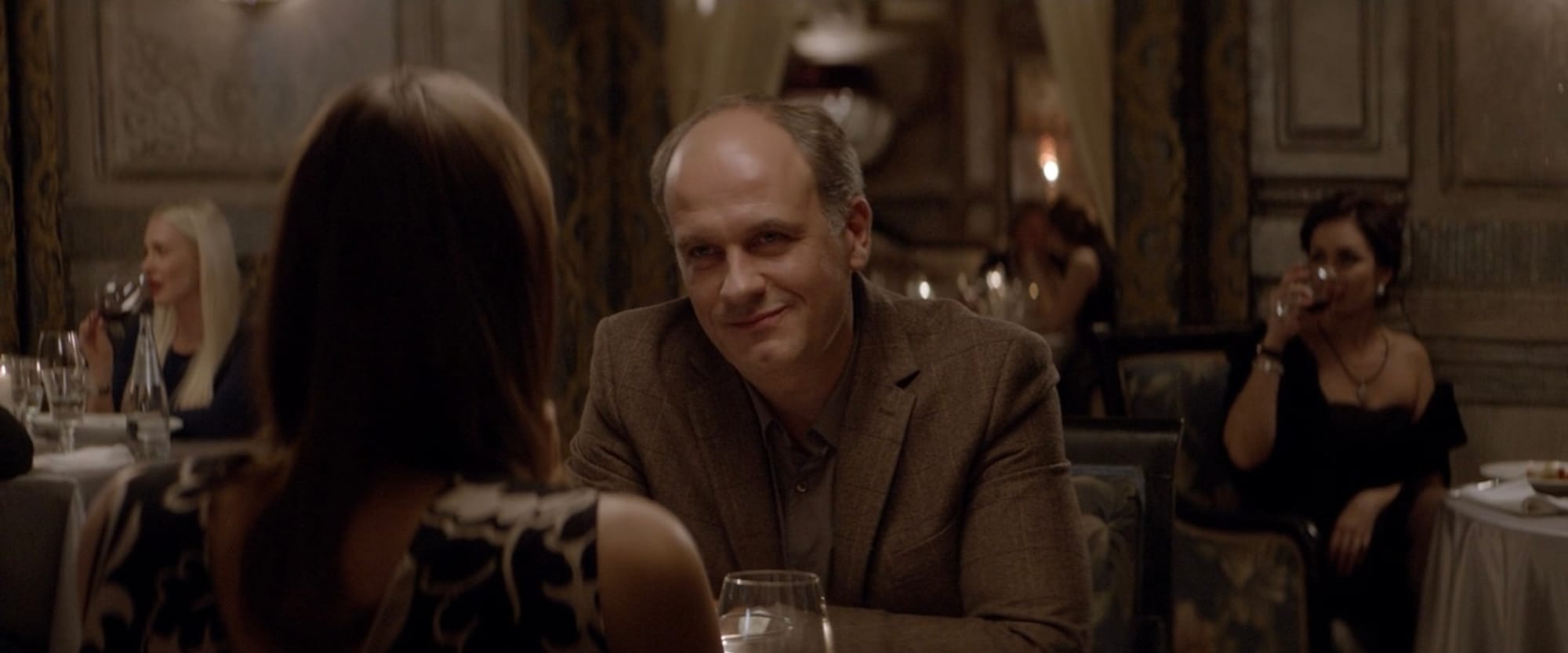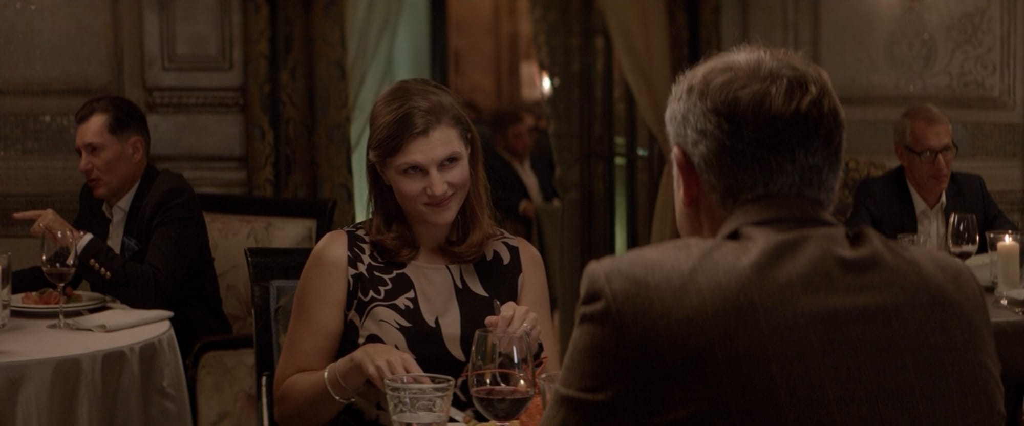 Ещё в этой категории нельзя пройти мимо сцены свидания в ресторане. Здесь смотрим на одинаковость происходящего на втором плане.