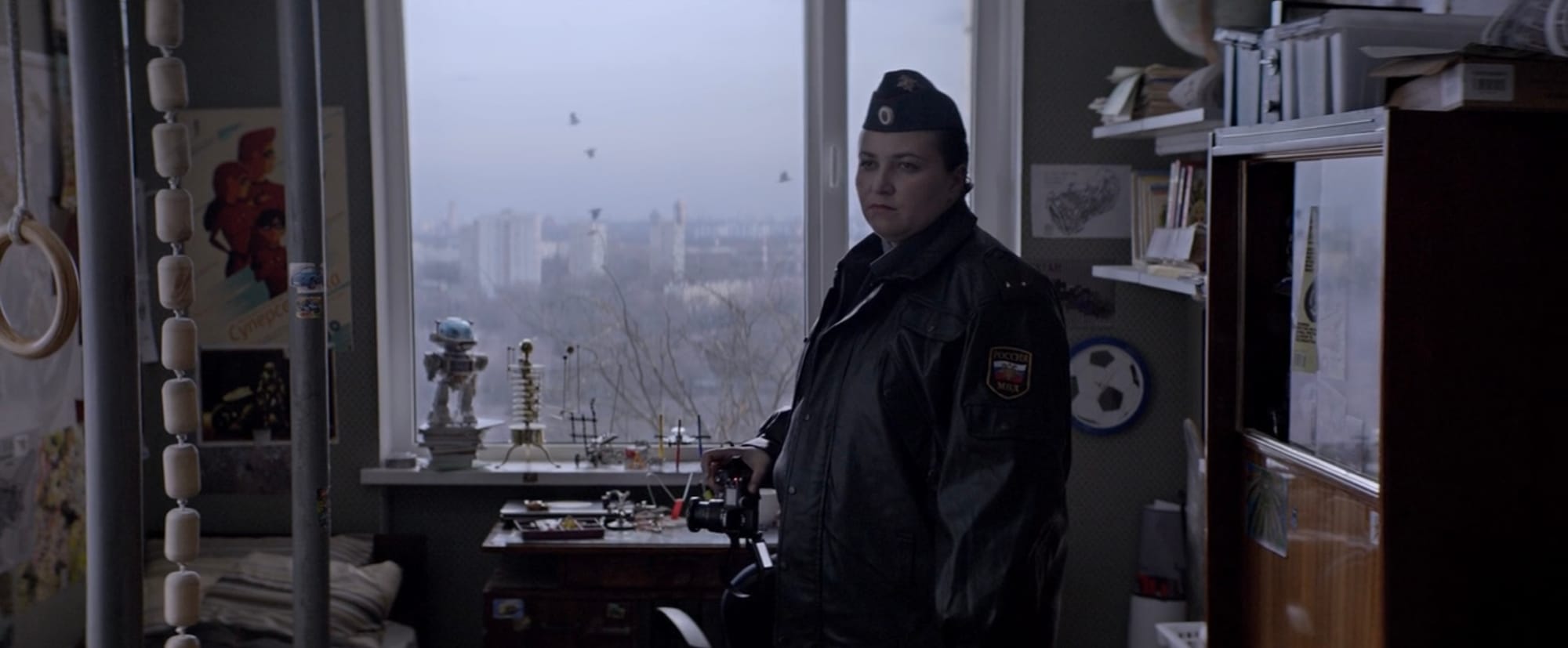 Это ещё сильнее бросается в глаза в сцене, где поисковик Лена оказывается «не в своей стихии» посреди семейных разборок, где бабушка Алёши орёт на мать Алёши. На этом полномочия — всё, фонариком тут не поможешь. У бабушки дома, разумеется, календарь с иконой.