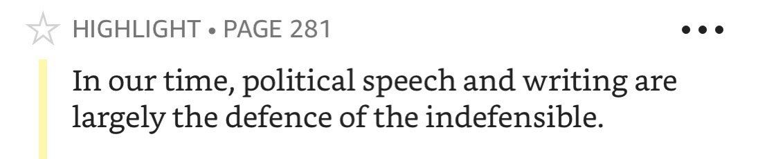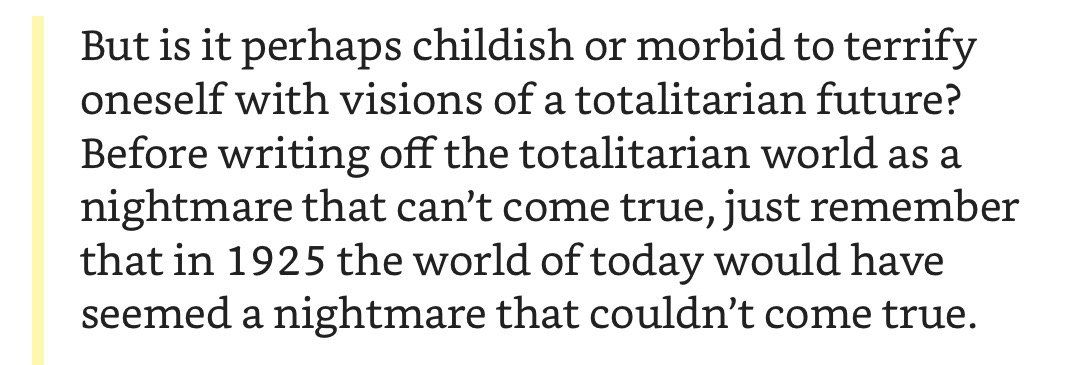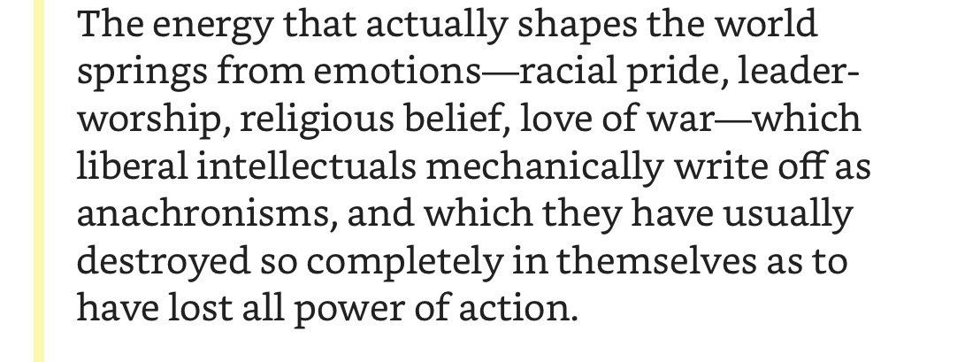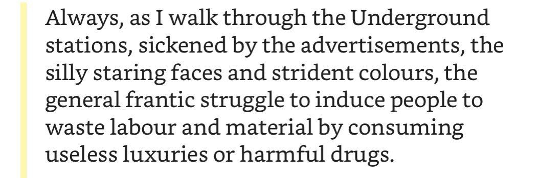 В «мирное» время его эссе были бы замечательны только как качественная публицистическая проза: краткие ёмкие тезисы в правильном ритме с атмосферными интерлюдиями, которые дают место подумать самому. Но мне повезло — совершенно не пришлось напрягать воображение, чтобы полностью увидеть ценность Оруэлла, как социального комментатора.