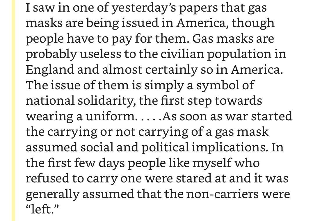 «Противогазы скорее всего бесполезны для мирного населения <…> Ношение или не ношение противогаза — демонстрация политических взглядов» читаю я и переключаюсь на треды про полезность/бесполезность медицинских масок. За неделю до того, как эти маски стали обязательны даже на улицах.