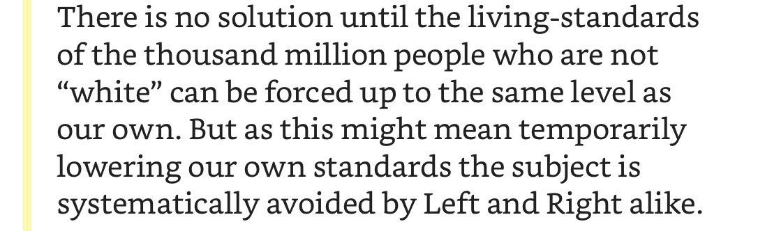 Разъедающий эффект рекламы и сверхпотребления, лицемерие СМИ, последствия колониализма и расовые конфликты, социальное неравенство, угроза авторитарных и тоталитарных режимов, потеря личных свобод. И даже попытки России повлиять на политику западных стран. Кажется, что в списке современных «проблемных тем» нет ни одного вопроса, по которому Оруэлл не оставил конструктивного высказывания.