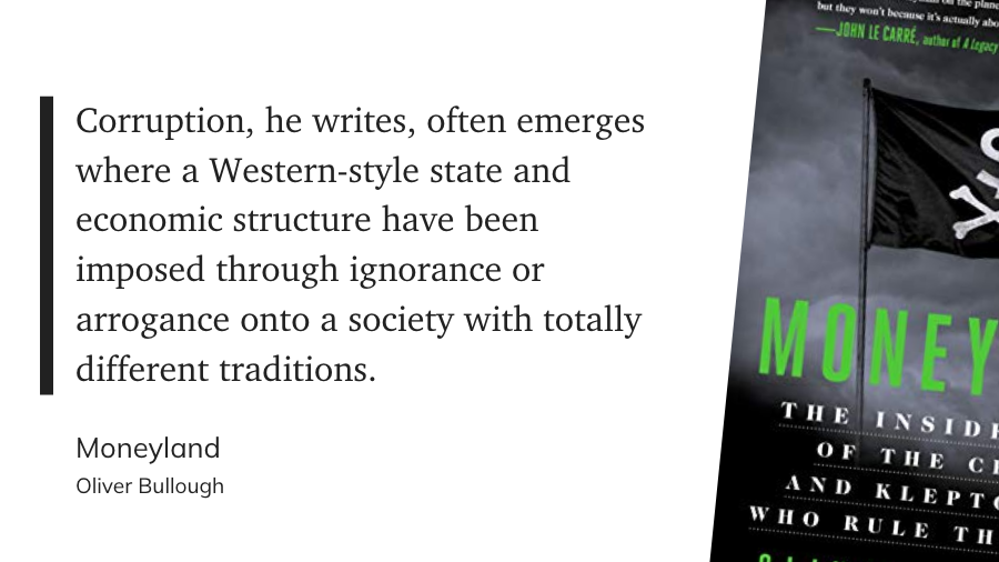 Книжка про ржавчину на теле глобальной финансовой системы — коррупцию. Про перекачку ресурсов из небогатых автократий в богатые демократии. Как работает эта инфраструктура и к чему приводят злоупотребления властью, будь-то власть полицейского государства или власть хитрого финансиста из лиги плюща.
