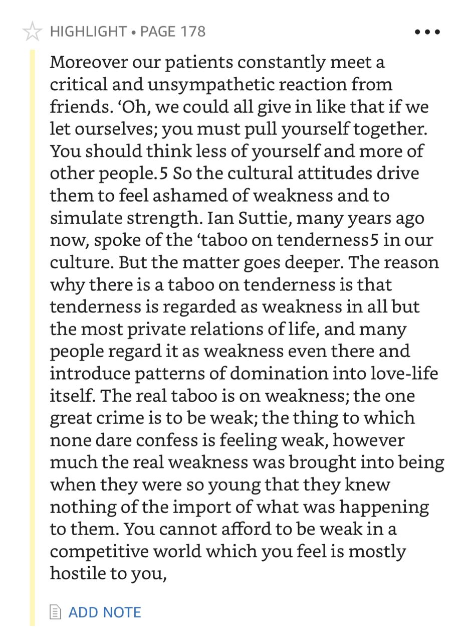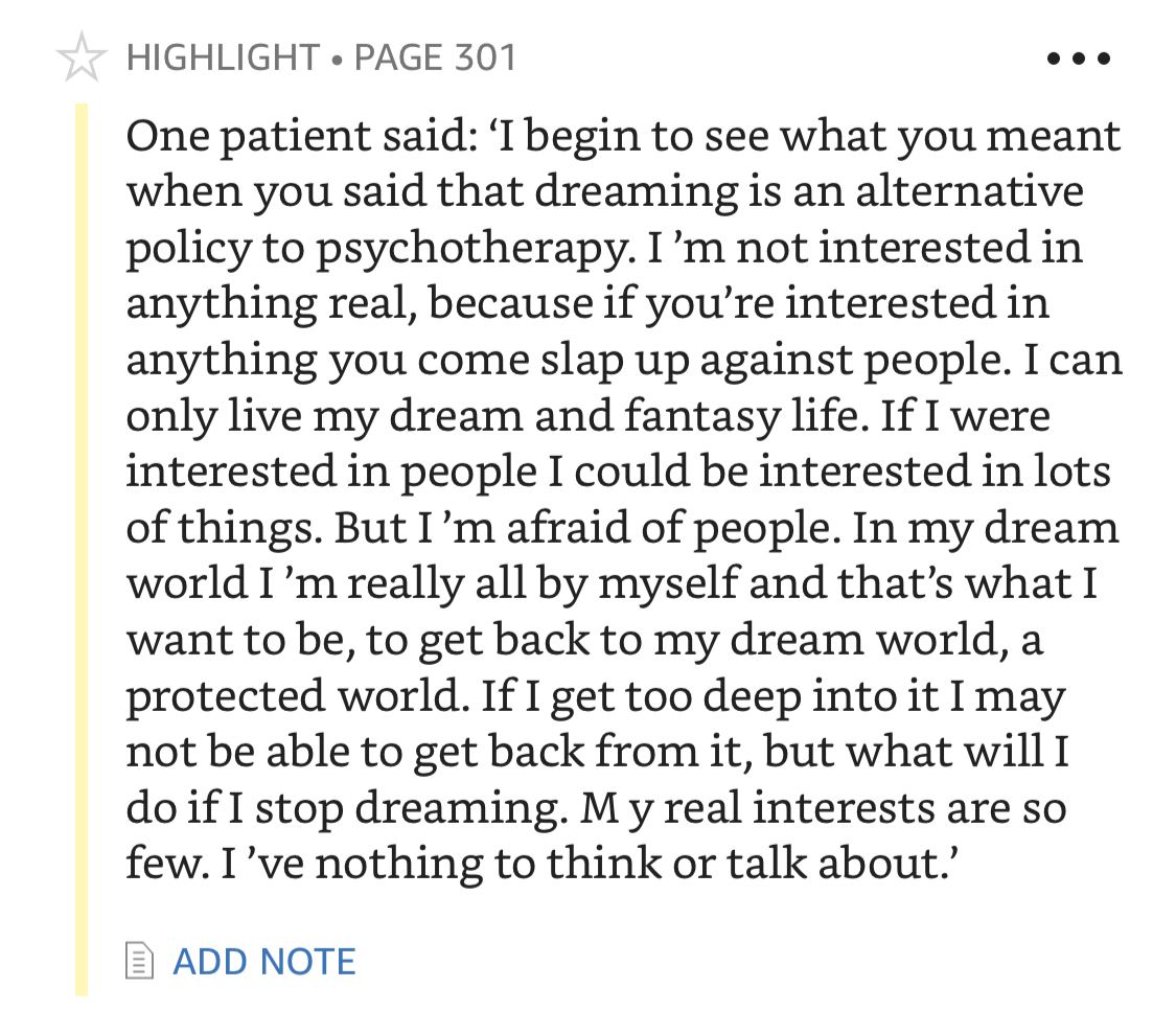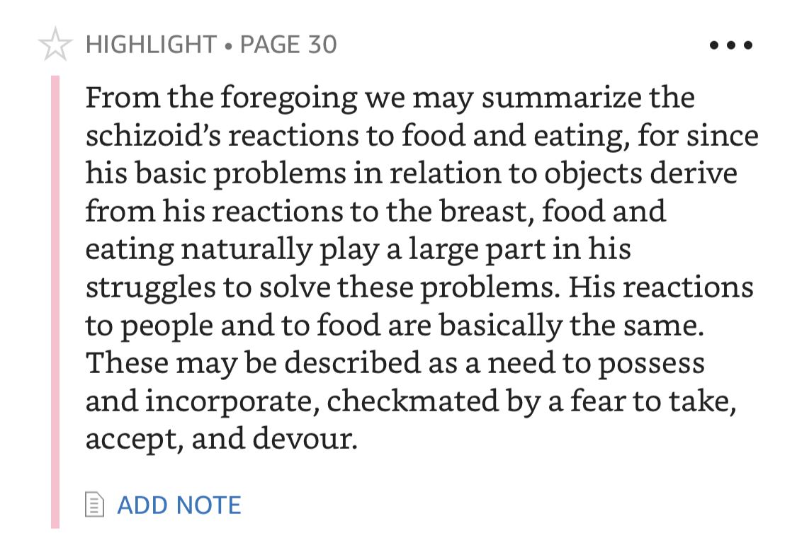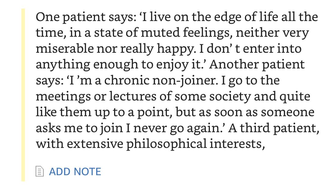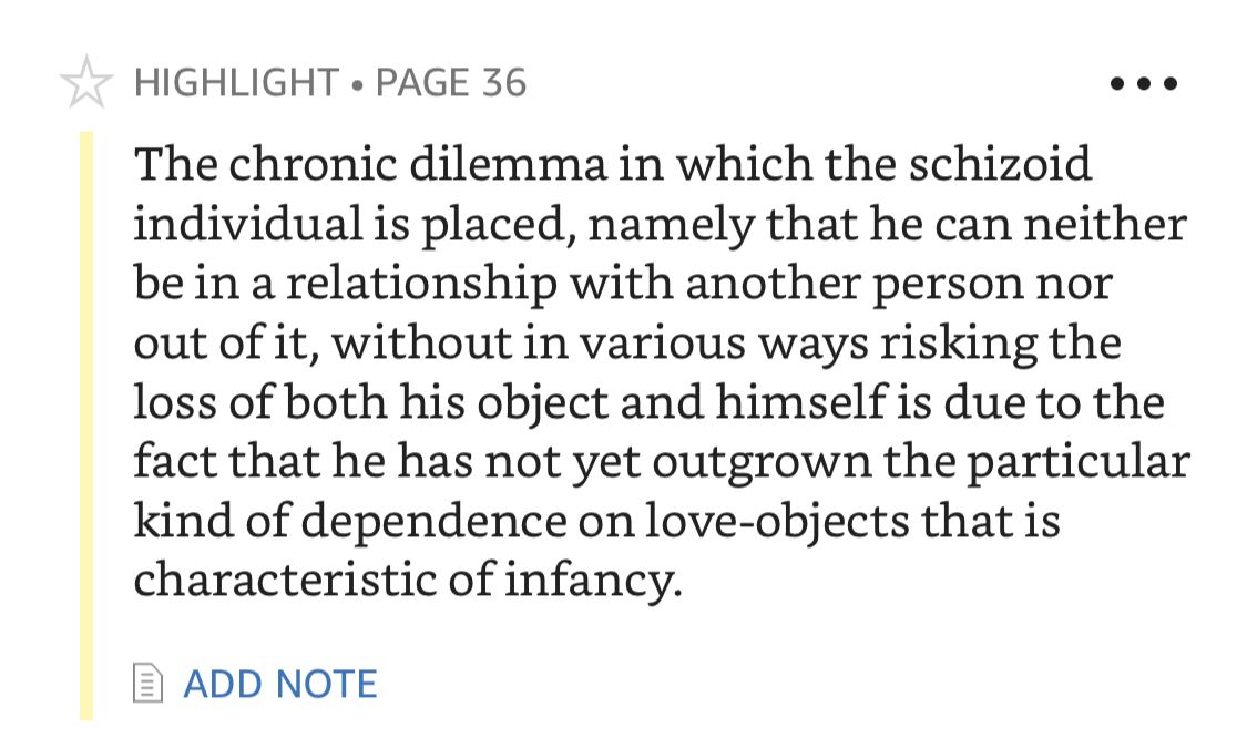 Труд британского психоаналитика, написанный в 60-х годах и посвящённый шизоидному расстройству личности в контексте теории объектных отношений. Практически каждое слово в предыдущем предложении — причина эту книгу не читать.