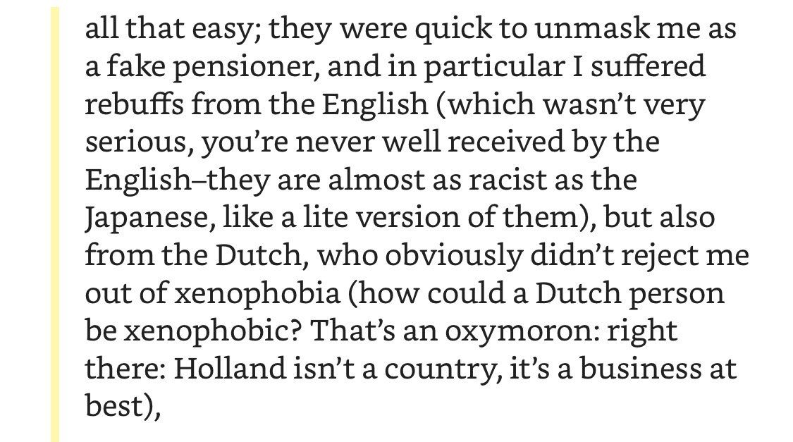 Такой сухой реализм и есть то, чем антиутопия Серотонина вызывает дискомфорт. По крайней мере когда читаешь про неё. Жить в ней по большей части довольно комфортно