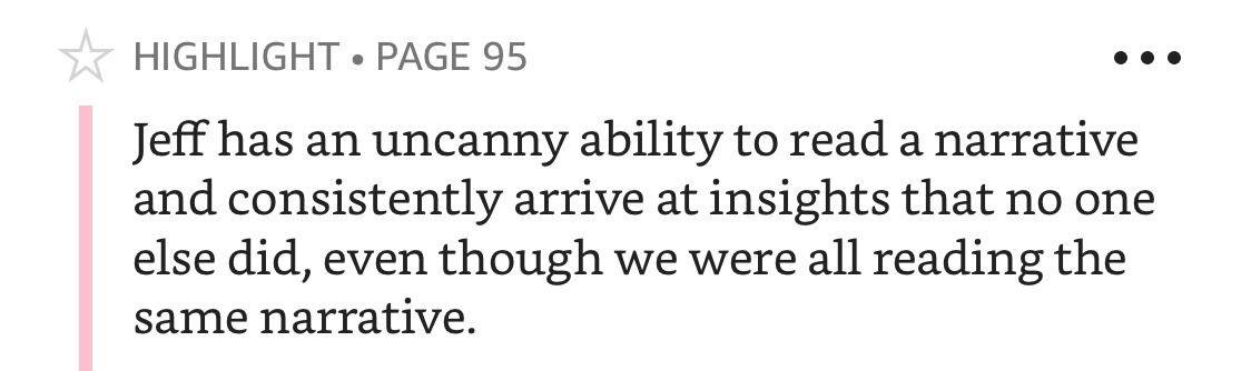 3. Намного короче. Я бы очень хотел, чтобы редактор книги повыкидывал весь этот миллионерский флекс про то как «Мы с Джефом то, мы с Джефом сё» весь этот гольфклубно-барбекюшный антураж свитеров на молнии под жилетками Patagonia — просто зачем он мне, почему он в книге, за которую я денег отдал, uughh.